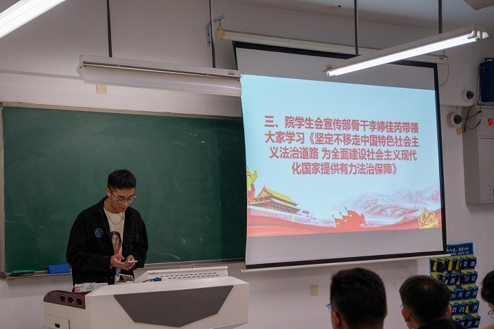 学习会上,院学生会志愿服务部部长颜妍带领大家学习《加强政党合作共谋人民幸福》,明确中国政党一直都在承担责任,不断增强为人民谋幸福的能力,培养群众的爱国之情。综合事务部副部长岳钰茜带领大家学习《习近平论“不忘初心、牢记使命”》,指出中国一直在发展中国特色社会主义先进文化,不断凝聚青年热情,鼓励青年承担起青年使命。宣传部骨干李婷佳芮带领大家学习《坚定不移走中国特色社会主义法治道路为全面建设社会主义现代化国家提供强有力法治保障》,明确依法治国的重要性,督促同学应高效做好学生会工作,不断为组织注入生机。最后,外联部骨干袁婷婷带领大家学习《习近平:在纪念辛亥革命110周年大会上的讲话》,阐述中国共产党为实现中华民族伟大复兴所贡献的力量,警醒各位青年需拼搏奋斗,努力与国家一起蓬勃成长。