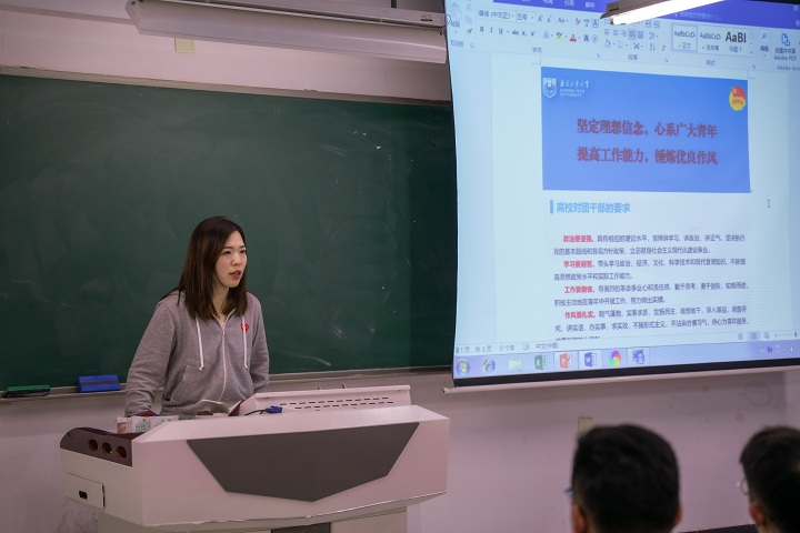 院团委书记张倩强调理论学习是一切工作的源头和动力,提醒同学在实践活动中应与理论知识对接。同时回顾一年工作,她与学生会同学一起顺利举办了很多活动,对学生工作表示肯定以及感谢。最后,张倩老师提醒同学们在为活动工作奋斗的同时仍要以学习为重,守好学生本分。